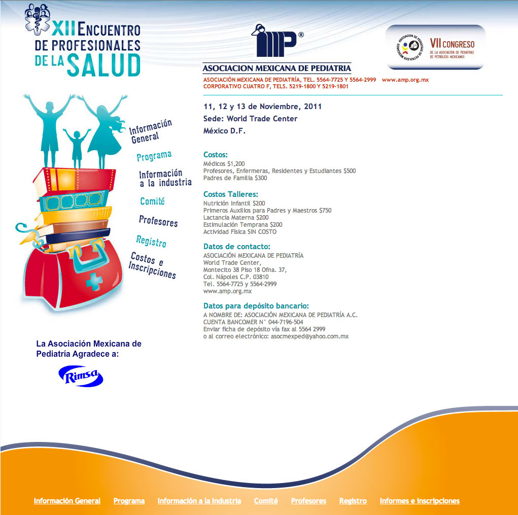Corporativo Cuatro F (2011). Diseño el sitio del Encuentro de Profesionales de la Salud de la Asociación Mexiacana de Pediatría