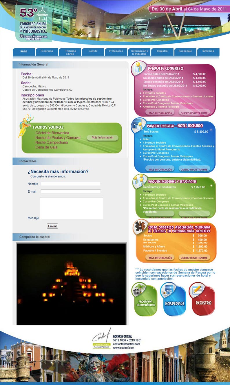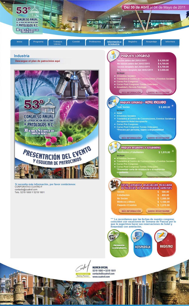 Corporativo Cuatro F (2011). Diseño de sitio para el 53o. Congreso Anual de la Asociación Mexicana de Patólogos A.C.