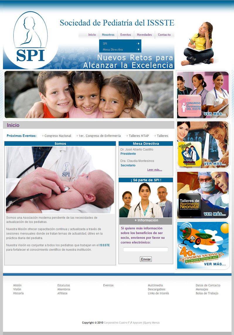 Corporativo Cuatro F (2010). Actualización de logotipo e identidad de la Sociedad de Pediatría del ISSSTE y sitio web